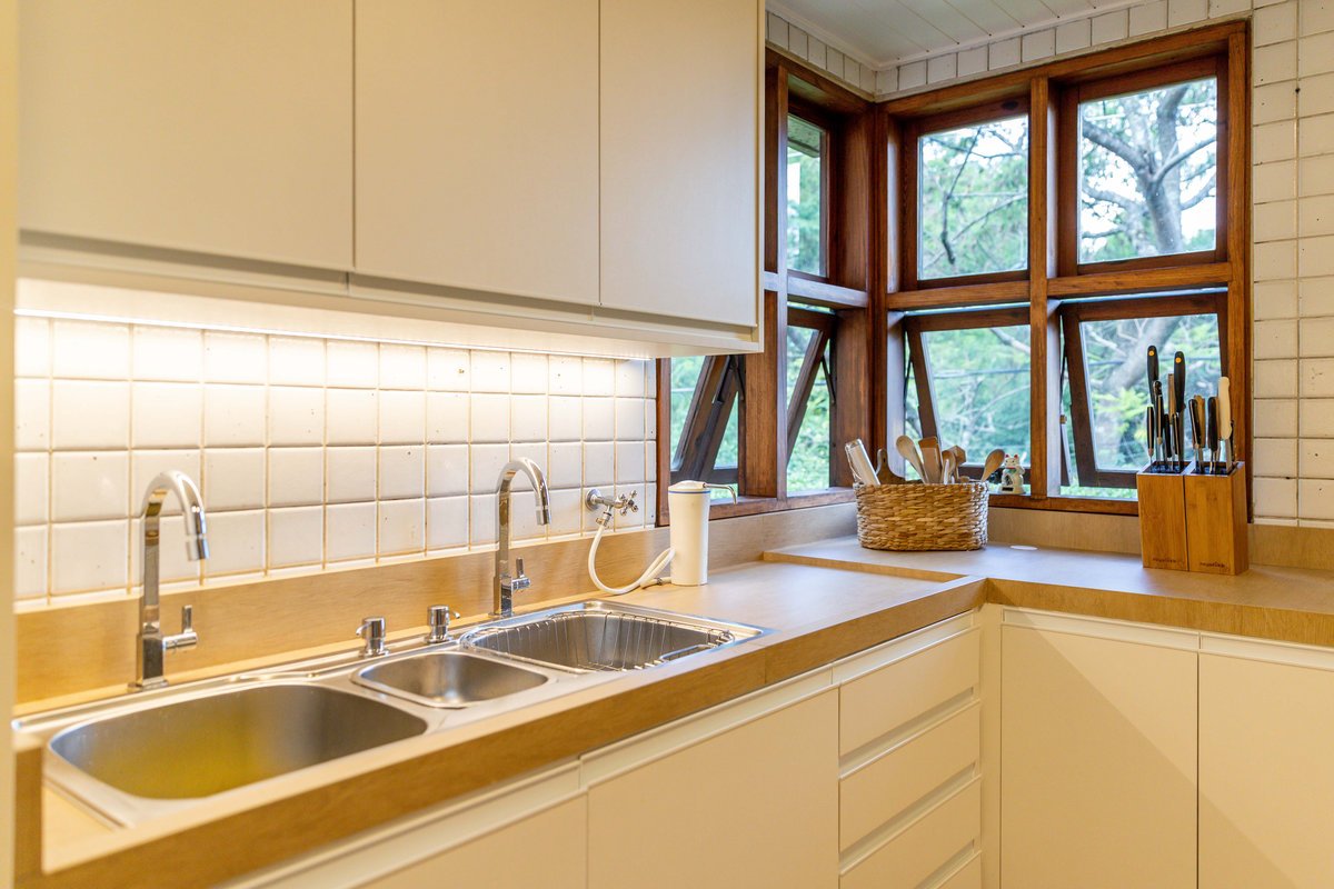 Para a Casa Madeira, nosso maior desafio foi realizar as alterações que nossos clientes nos pediram, sem descaracterizar o projeto inicial, visto que a casa foi construída em meados dos anos 80. Entretanto havia dores muito pontuais dos proprietários, que precisavam ser sanadas, então com carinho e clareza, fizemos intervenções na passarela que dá acesso